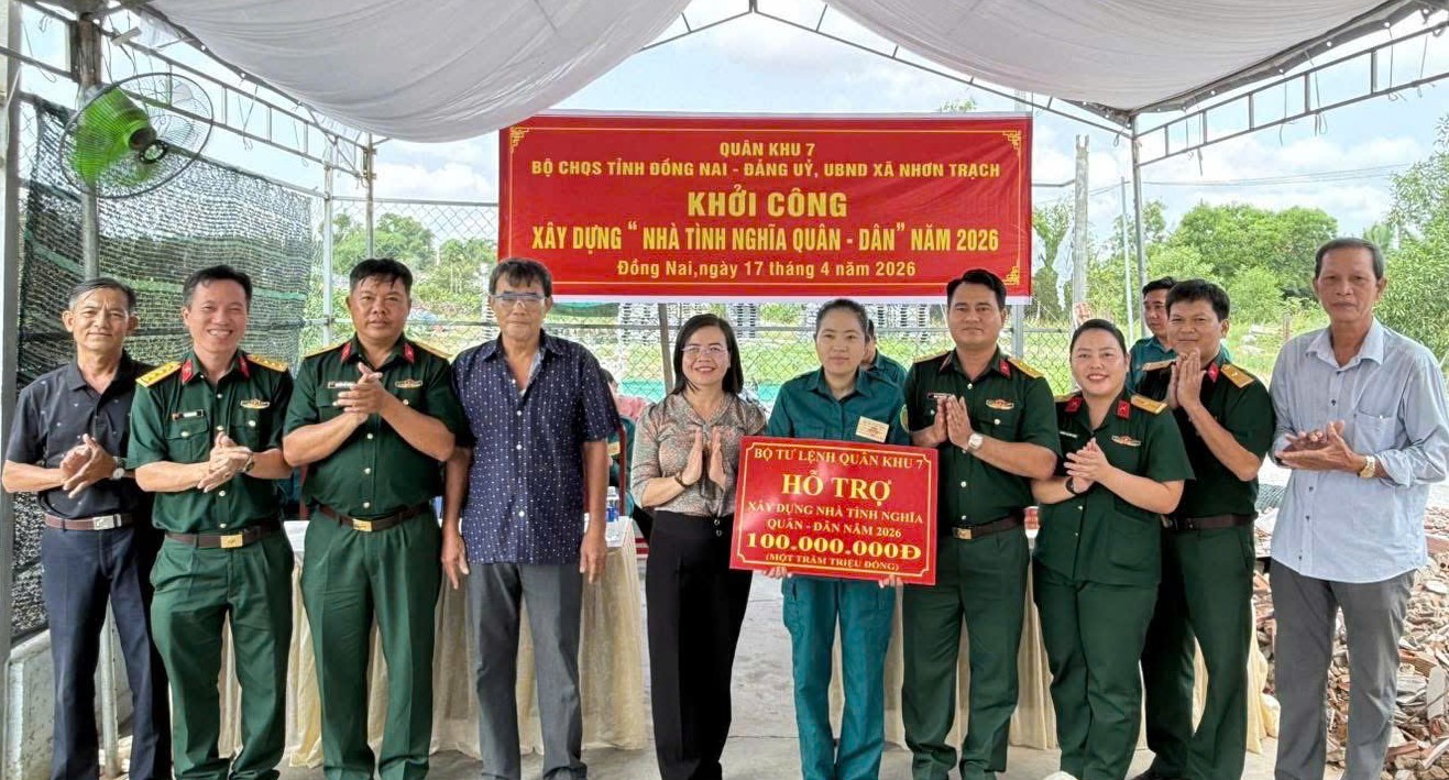 Sáng ngày 17/4/2026, Bộ Tư lệnh Quân khu 7 phối hợp cùng Đảng ủy – UBND – Ủy ban MTTQ Việt Nam xã Nhơn Trạch tổ chức lễ khởi công xây dựng “Nhà tình nghĩa quân – dân”.