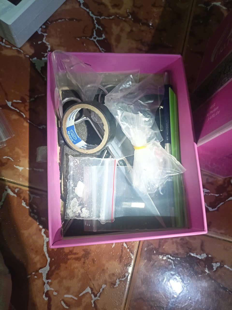 Cụ thể, vào khoảng 01 giờ 20 phút, lực lượng chức năng phát hiện 02 đối tượng (L.V.L., N.H.P.) đang có hành vi tổ chức sử dụng trái phép chất ma túy. Tại hiện trường, thu giữ 01 bộ dụng cụ sử dụng ma túy và 01 gói nylon bên trong chứa tinh thể rắn màu trắng, các đối tượng khai nhận là ma túy tổng hợp.