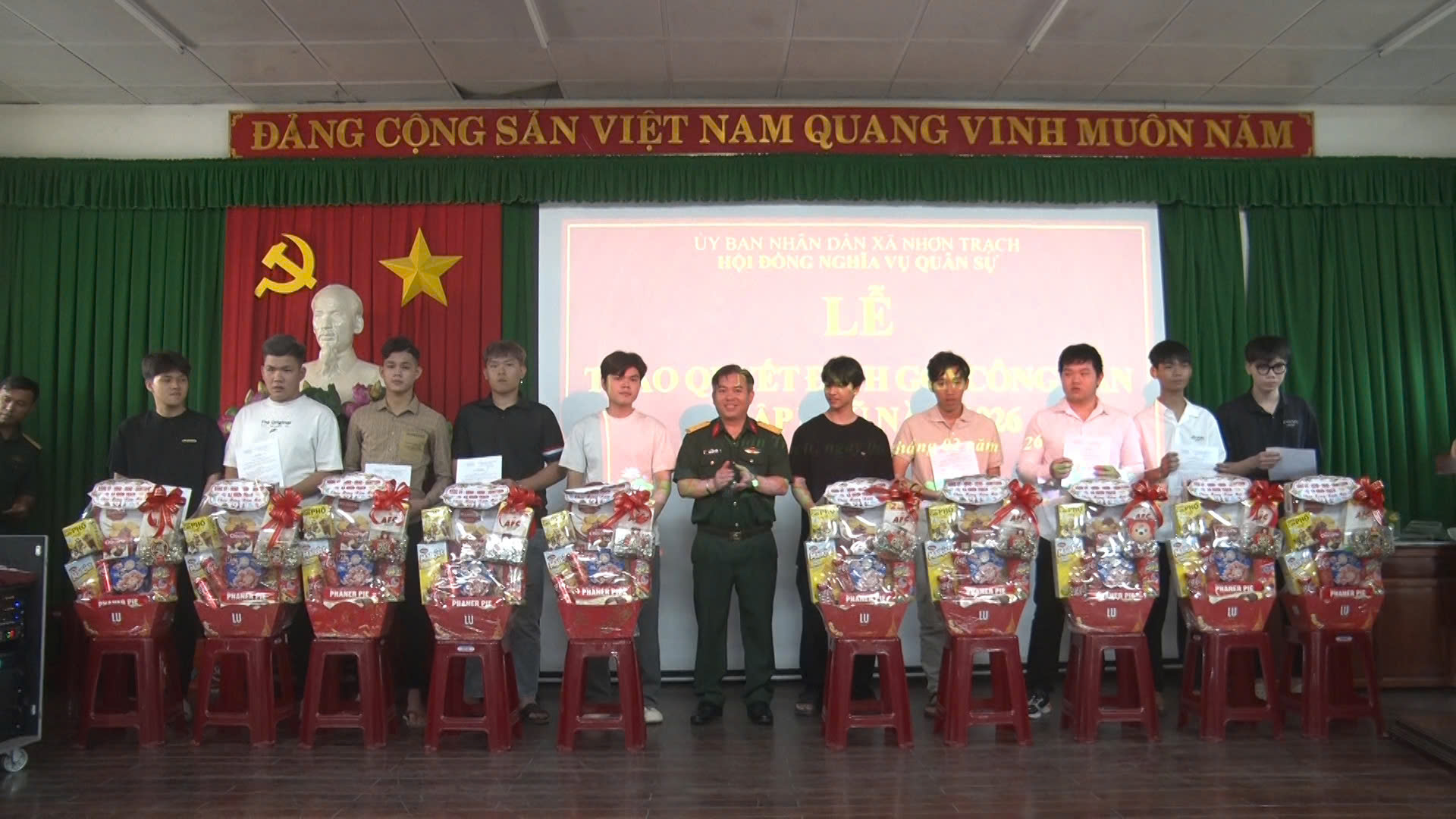 Ngày 6/2/2026, Hội đồng Nghĩa vụ quân sự xã Nhơn Trạch tổ chức Lễ trao 92 quyết định gọi các thanh niên đã trúng tuyển nghĩa vụ quân sự năm 2026 chuẩn bị nhập ngũ, bảo vệ Tổ quốc. Trung tá Trần Nhất Trung – Phó Chỉ huy trưởng – Tham mưu trưởng Ban Chỉ huy Phòng thủ Khu vực 1 Long Thành; Chủ tịch UBND xã – Chủ tịch HĐNV Quân sự xã ông Lư Thành Nam dự hội nghị.