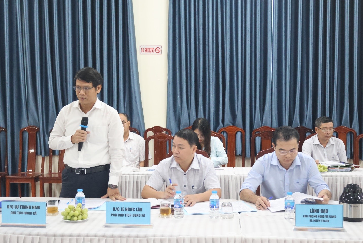 Chủ tịch UBND xã Nhơn Trạch Lư Thành Nam phát biểu trước Đoàn công tác