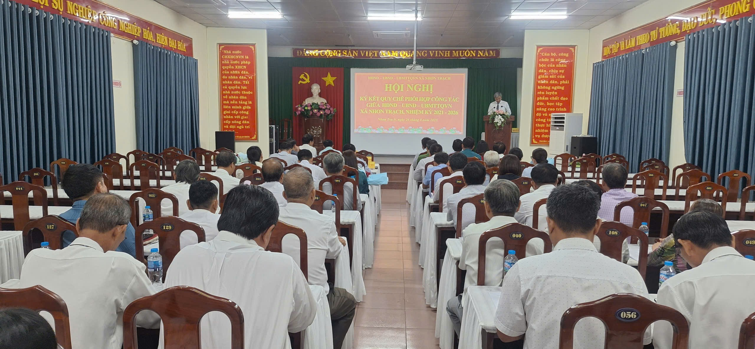 Ngày 26/8/2025, xã Nhơn Trạch tổ chức Hội nghị ký kết Quy chế phối hợp công tác giữa HĐND, UBND và Ủy ban MTTQ Việt Nam xã nhiệm kỳ 2021-2026. Dự và chỉ đạo Hội nghị có đồng chí Từ Nam Thành – Bí thư Đảng ủy, Chủ tịch HĐND xã.