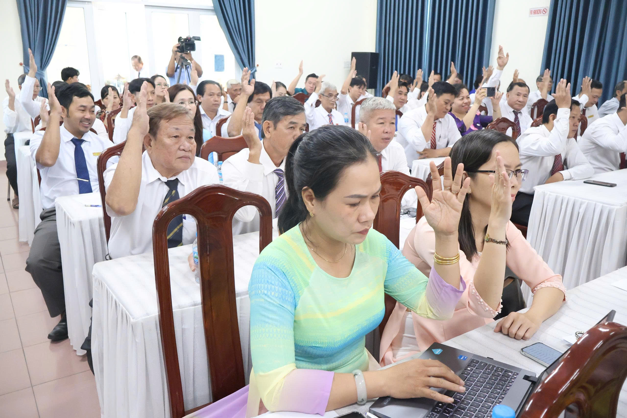 Đại biểu HĐND xã biểu quyết thông qua các Nghị quyết