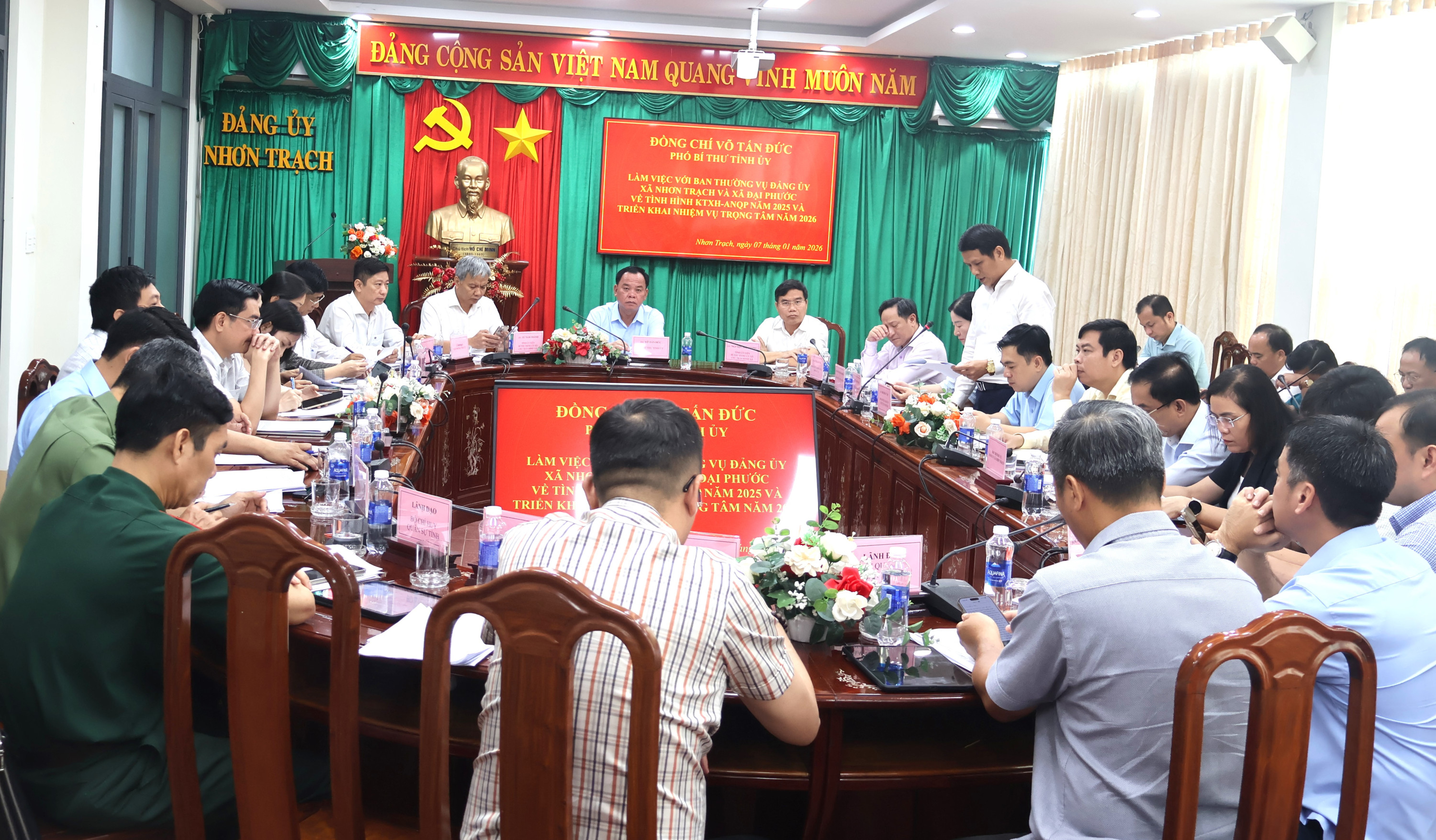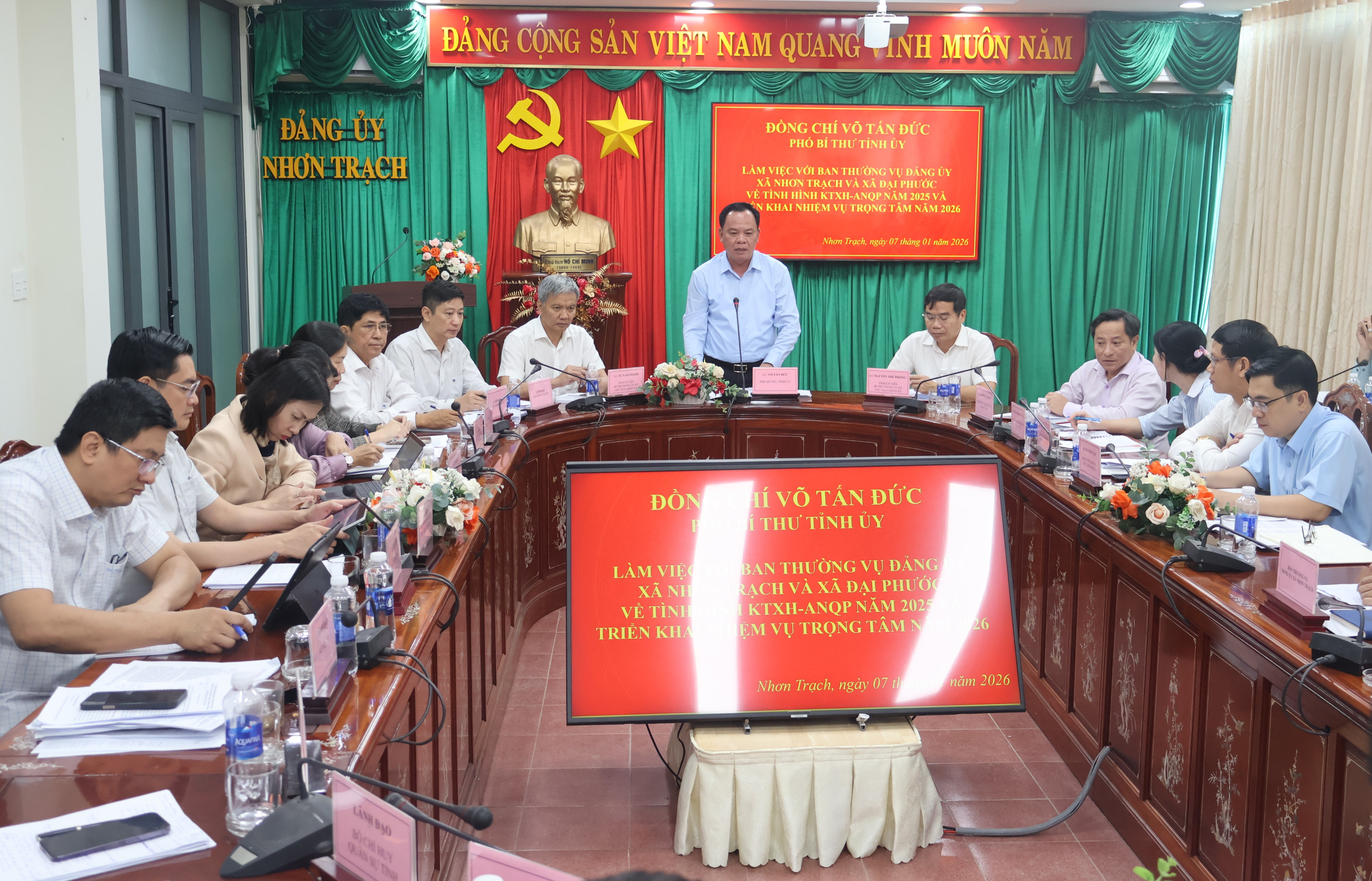 Sáng ngày 7/01/2026, đồng chí Võ Tấn Đức – Phó Bí thư Tỉnh ủy đã có buổi làm việc với Ban Thường vụ Đảng ủy xã Nhơn Trạch nhằm đánh giá tình hình phát triển kinh tế - xã hội, quốc phòng - an ninh năm 2025 và triển khai nhiệm vụ trọng tâm năm 2026.