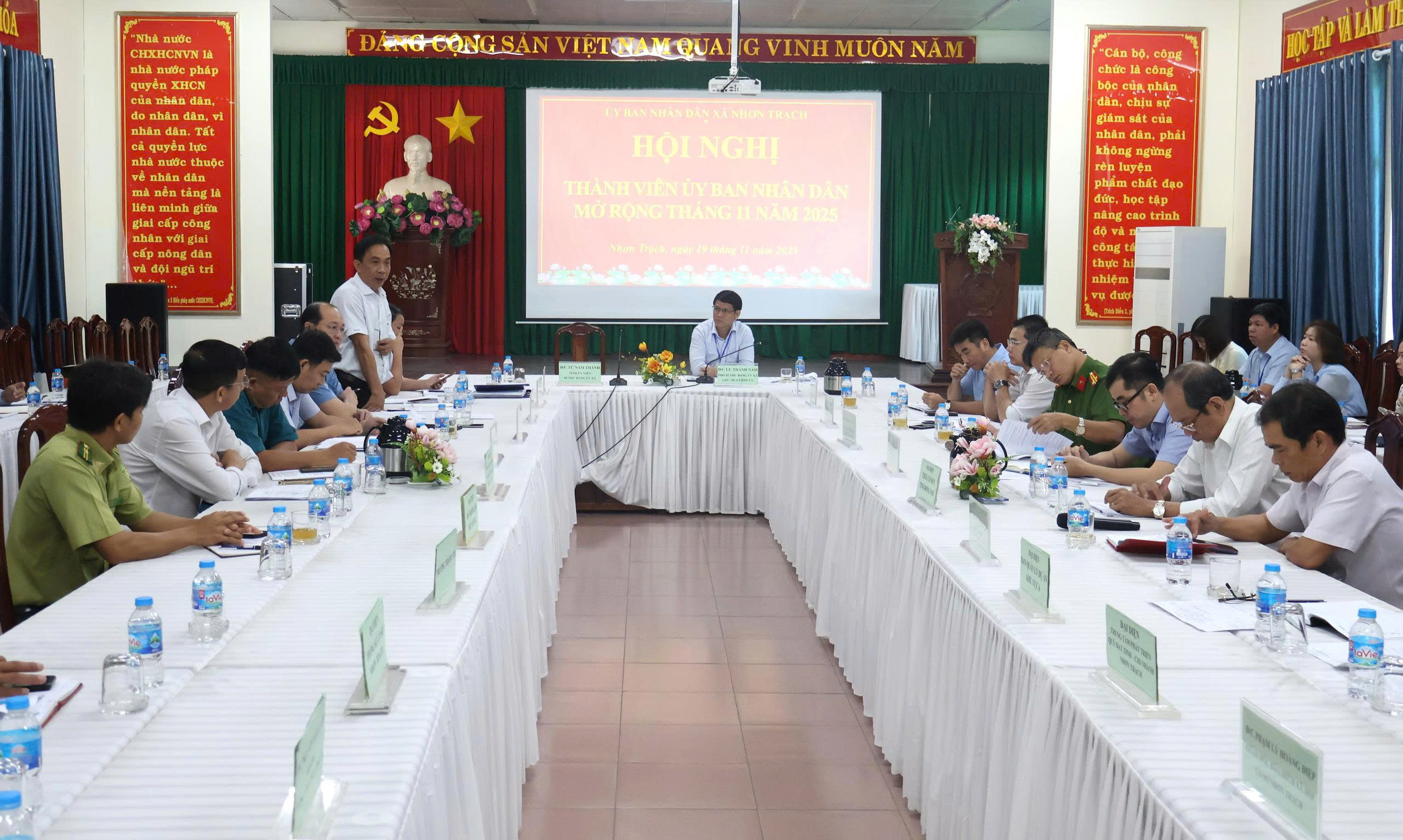 Sáng ngày 19/11/2025, Phó Bí thư Đảng uỷ, Chủ tịch UBND xã Nhơn Trạch Lư Thành Nam chủ trì cuộc họp thành viên UBND xã nhằm rà soát kết quả thực hiện các chỉ tiêu phát triển kinh tế - xã hội và quốc phòng – an ninh năm 2025