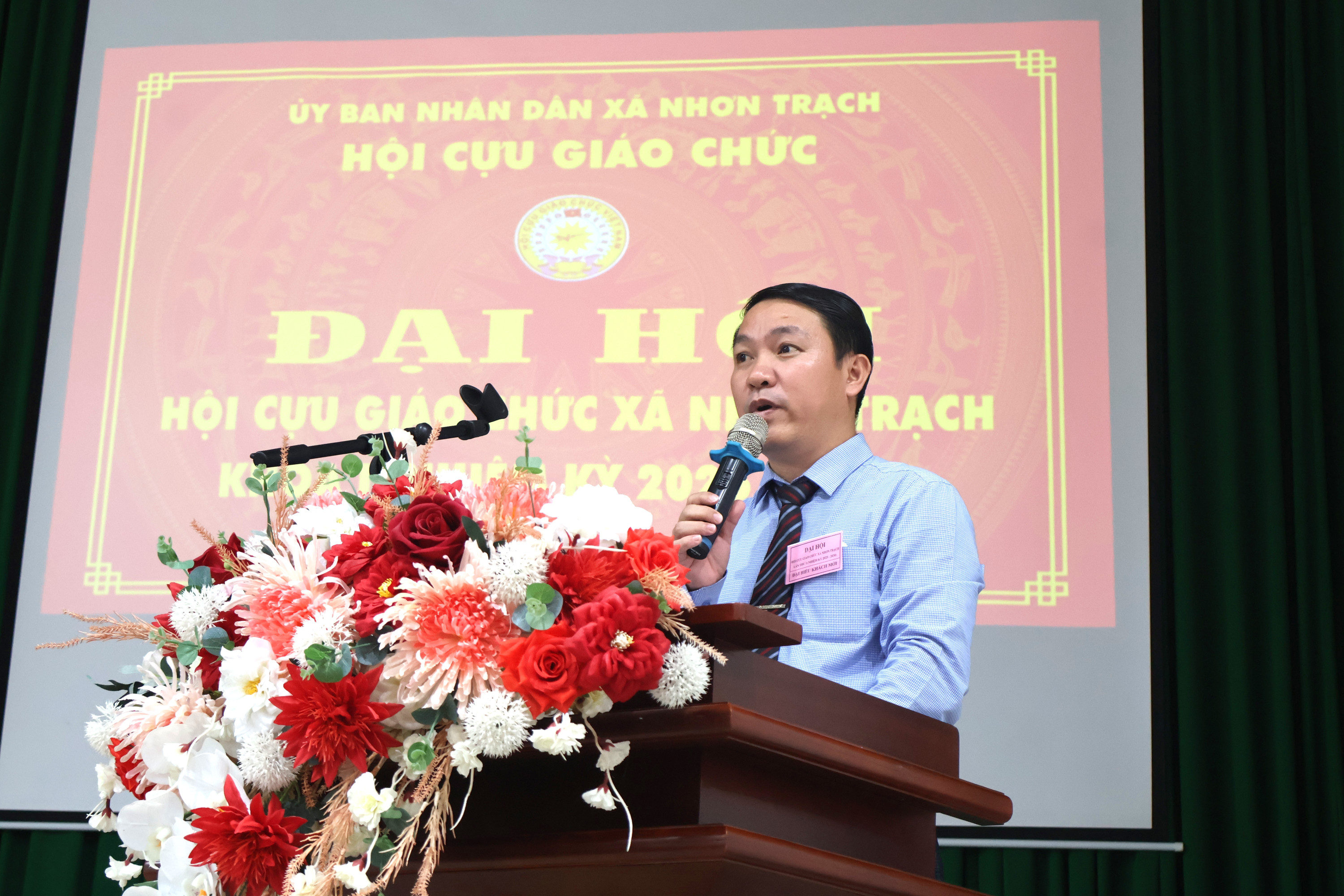 Phát biểu tại Đại hội, Phó Chủ tịch UBND xã Lê Ngọc Lân đánh giá cao sự nỗ lực, nhiệt huyết của Ban vận động và quý thầy cô, qua đó mong rằng Hội Cựu giáo chức xã Nhơn Trạch sẽ có nhiều hoạt động thiết thực, sôi nổi và hiệu quả, đóng góp tích cực vào sự nghiệp giáo dục và đào tạo của xã nhà, là điểm tựa tinh thần vững chắc của hội viên. Thời gian tới, Phó Chủ tịch UBND xã cũng đề nghị Ban chấp hành Hội Cựu giáo chức và hội viên quan tâm thực hiện tốt các quy định của Điều lệ hội; tăng cường các hoạt động giao lưu, tập hợp và phát triển hội viên, xây dựng tập thể Hội là một Hội mẫu mực nhất, nhiệt huyết nhất, trách nhiệm nhất, đoàn kết nhất; phát huy tích cực tâm sức, trí tuệ, kinh nghiệm vào sự nghiệp giáo dục và đào tạo, góp phần xây dựng quê hương, đất nước phát triển phồn vinh, hạnh phúc.