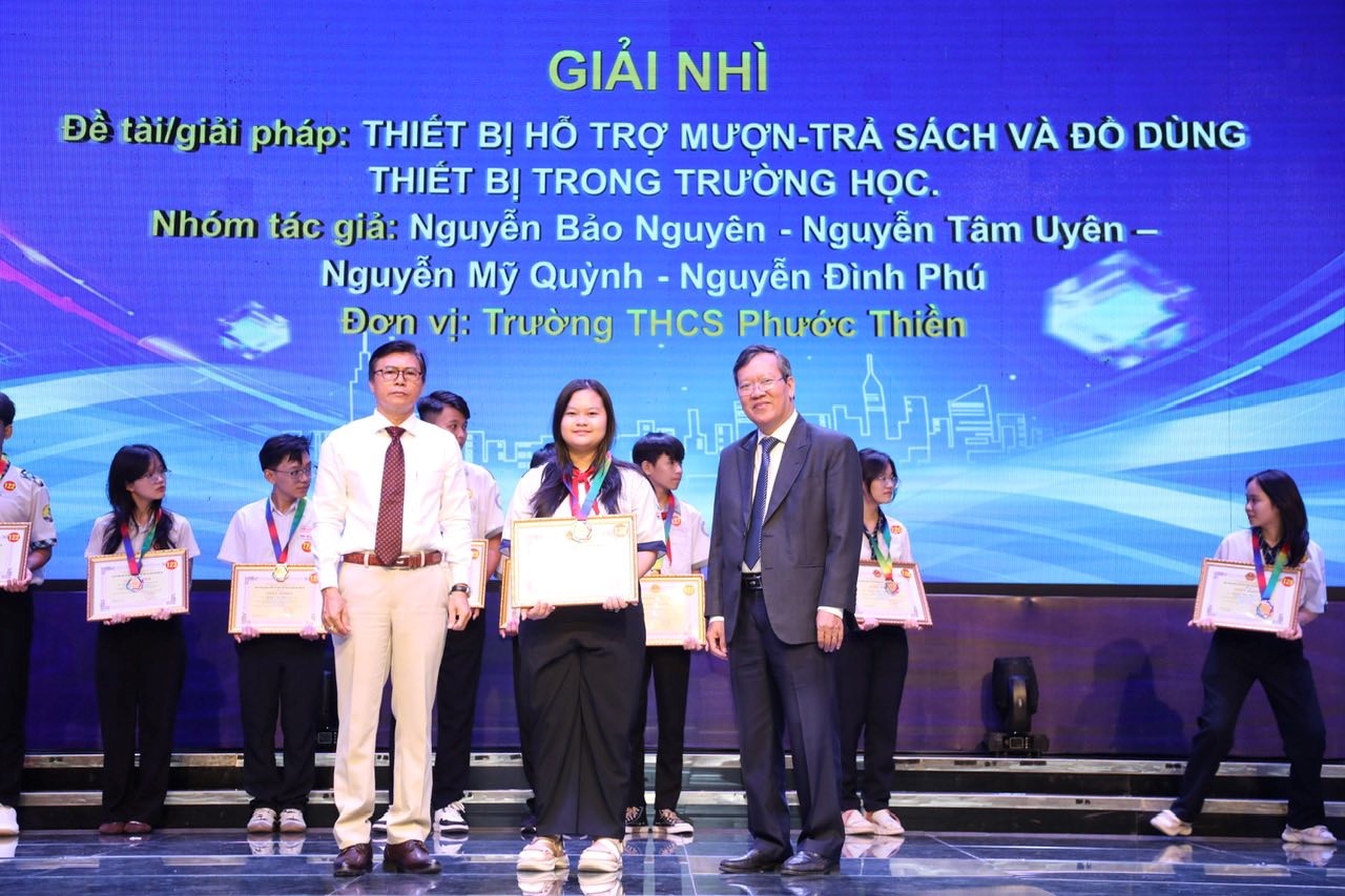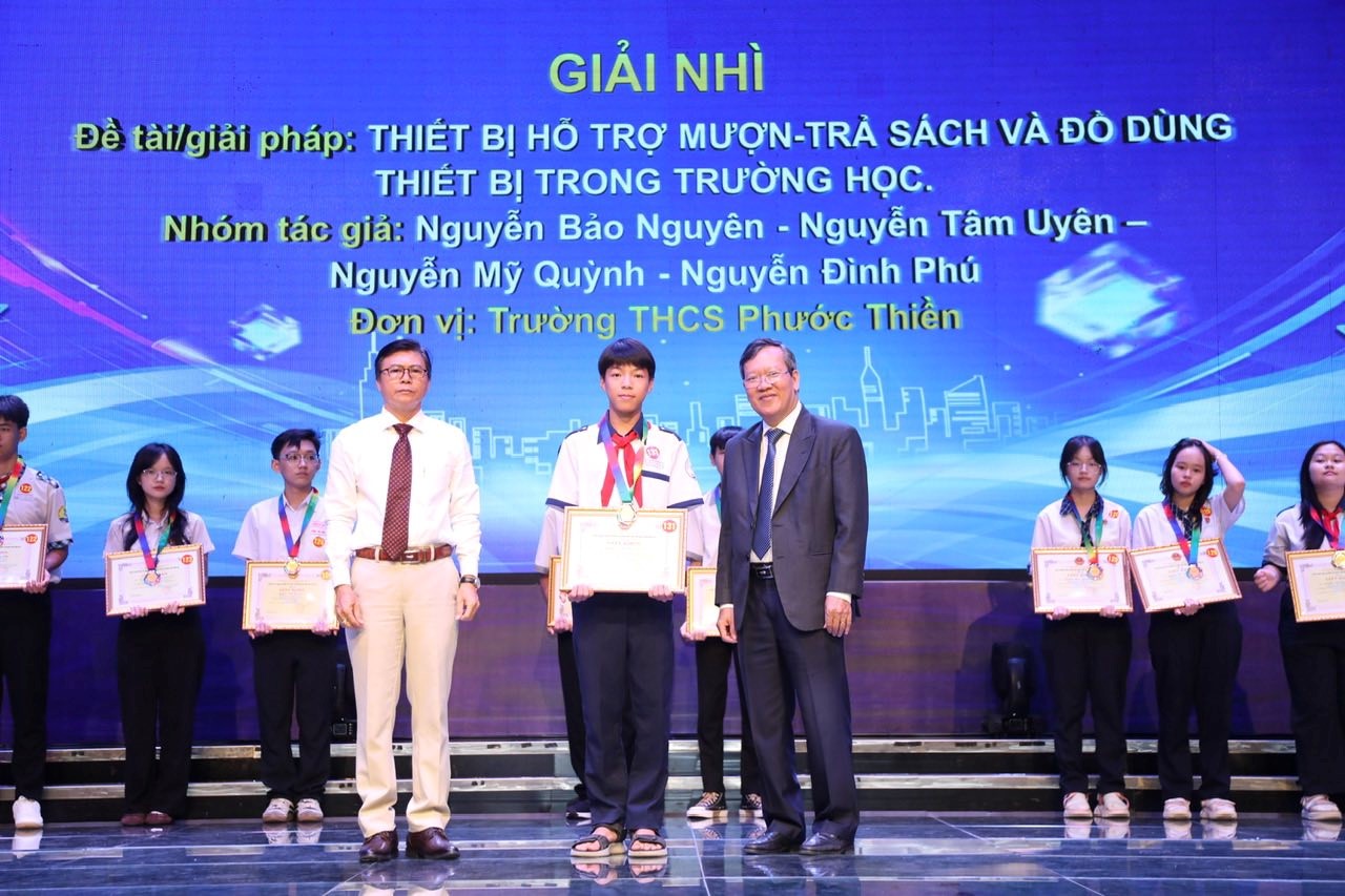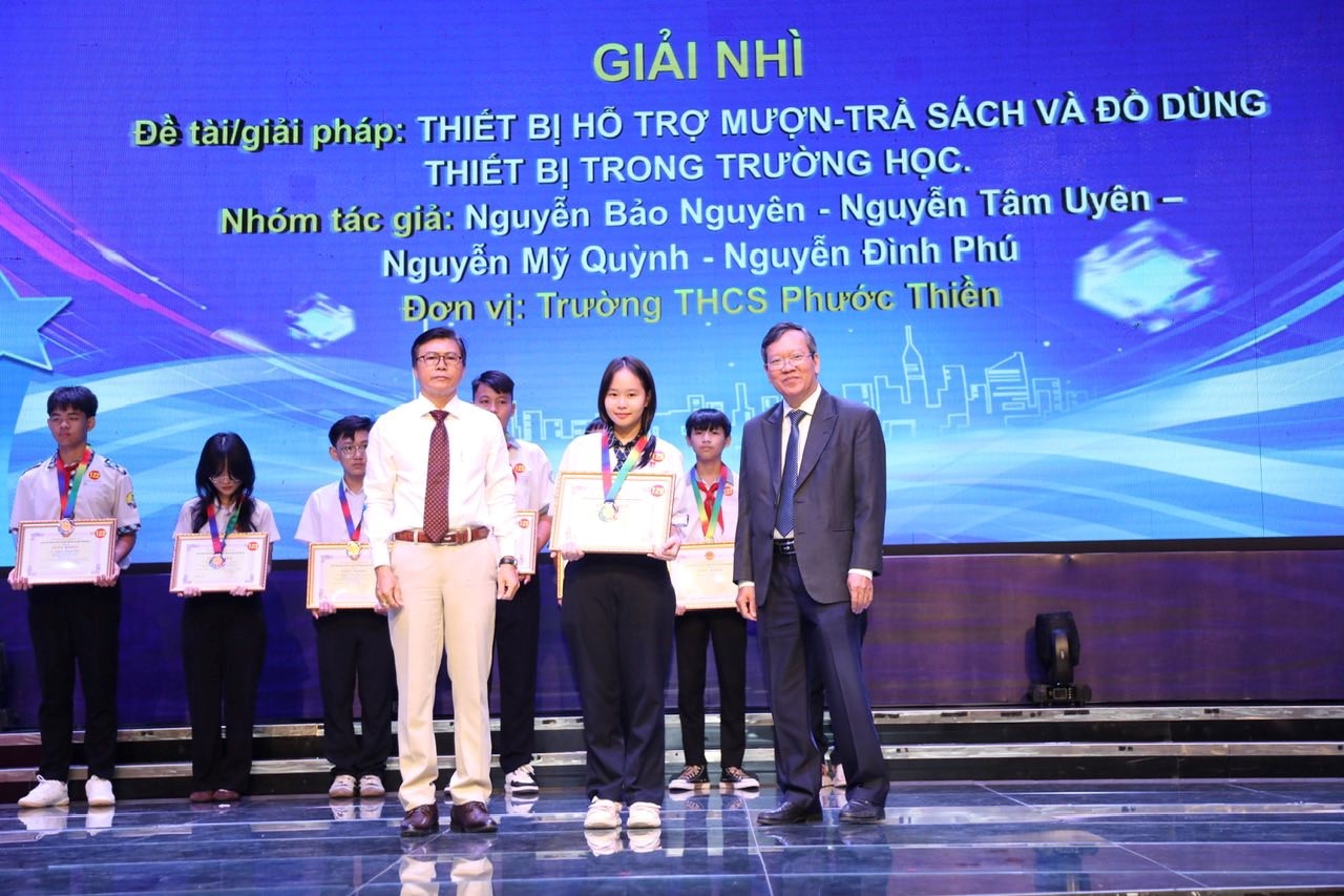 Mới đây, nhóm học sinh trường THCS Phước Thiền, xã Nhơn Trạch đã xuất sắc đạt giải Nhì tại cuộc thi Sáng tạo thanh thiếu niên nhi đồng tỉnh Đồng Nai năm 2025 với giải pháp "Thiết bị hỗ trợ mượn trả sách và đồ dùng thiết bị trong trường học", nhóm gồm các em: Nguyễn Bảo Nguyên, Nguyễn Tâm Uyên, Nguyễn Mỹ Quỳnh và Nguyễn Đình Phú.