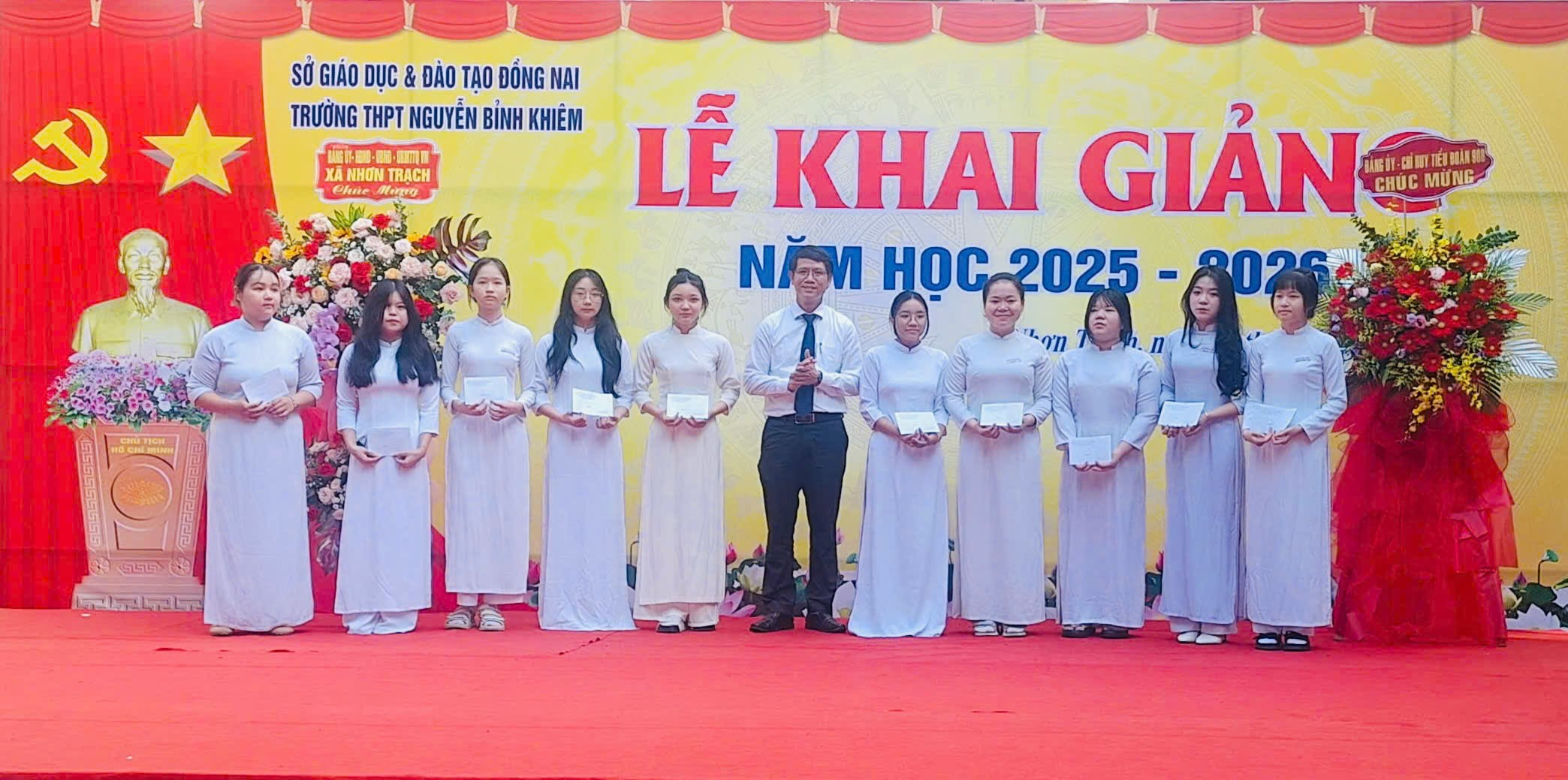 Tại Trường THPT Nguyễn Bỉnh Khiêm, đồng chí Lư Thành Nam – Phó Bí thư Đảng ủy, Chủ tịch UBND xã Nhơn Trạch cùng đại diện các ban, ngành, đoàn thể đã đến dự, tặng hoa chúc mừng và trao học bổng cho học sinh. Năm học mới, trường có hơn 1.500 học sinh với 38 lớp; đội ngũ 75 cán bộ, giáo viên, nhân viên đều đạt chuẩn và trên chuẩn; cơ sở vật chất đảm bảo với 33 phòng học kiên cố, 5 phòng thực hành và khu giáo dục thể chất riêng. Năm học qua, tỷ lệ tốt nghiệp của trường đạt 99%.