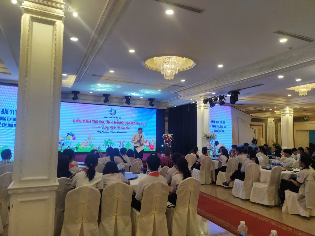 (Các em học sinh tham dự thảo luận tại Diễn đàn trẻ em tỉnh Đồng Nai năm 2025)