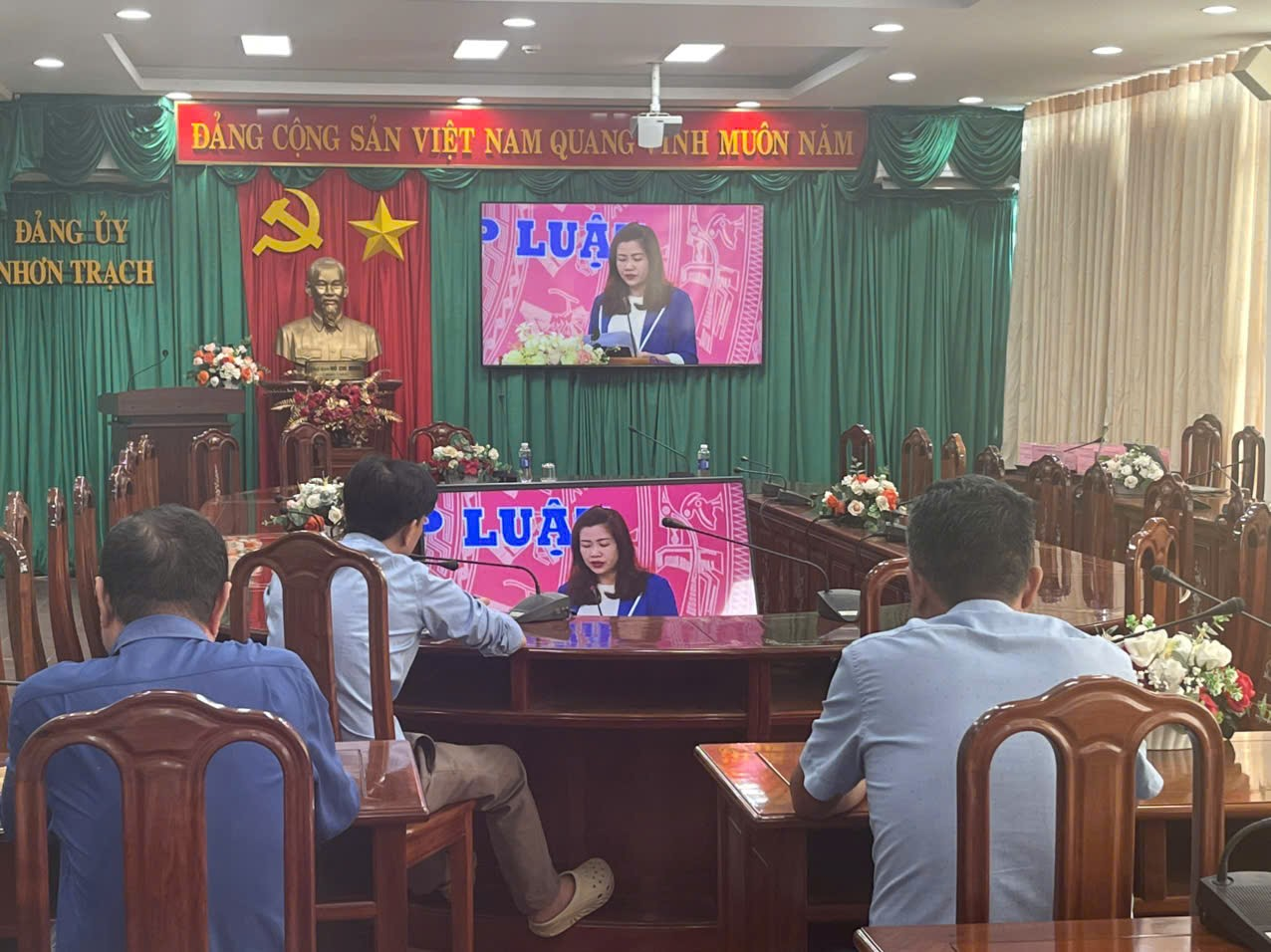 Ngày 17/10/2025, UBND xã Nhơn Trạch cử cán bộ, công chức thuộc đội ngũ Tuyên truyền viên pháp luật cấp xã, Công chức tham mưu công tác phổ biến, giáo dục pháp luật tại các phòng, ban, đoàn thể xã, Trưởng các Ban ấp, Đại diện Tổ hòa giải ở ấp, Đại diện Tổ bảo vệ an ninh, trật tự tham dự Hội nghị trực tuyến tập huấn báo cáo viên pháp luật quý III/2025 tại Phòng họp Đảng ủy xã Nhơn Trạch do Sở Tư pháp chủ trì, phối hợp với các sở, ban, ngành tỉnh tổ chức.