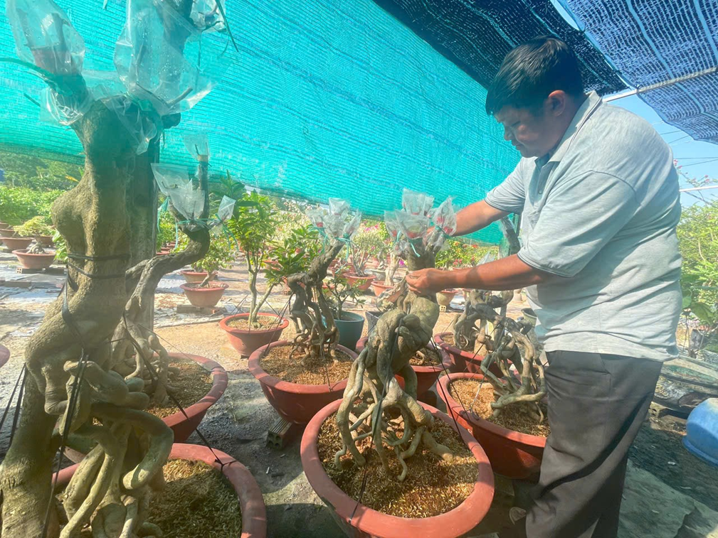 Bên cạnh đó, hộ anh Nguyễn Văn Hoàng cũng đã sử dụng vốn vay đúng mục đích. Với diện tích 6000 m, anh tập trung trồng bông giấy và Mai Vàng, góp phần đa dạng hóa các loại hoa, cây cảnh phục vụ nhu cầu của bà con nhân dân trong dịp Tết cổ truyền.