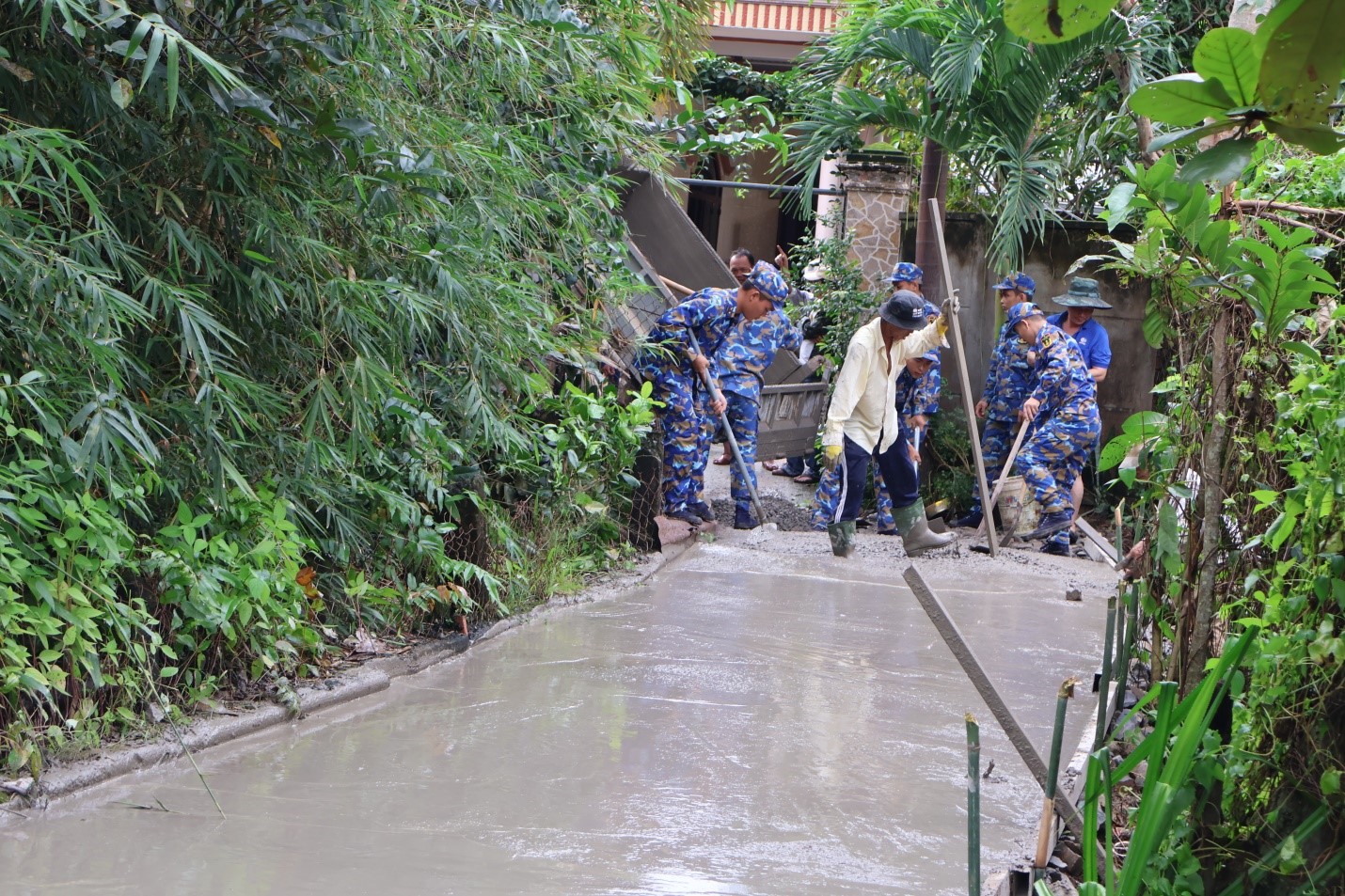 Lực lượng vũ trang và nhân dân cùng nhau làm đường GTNT