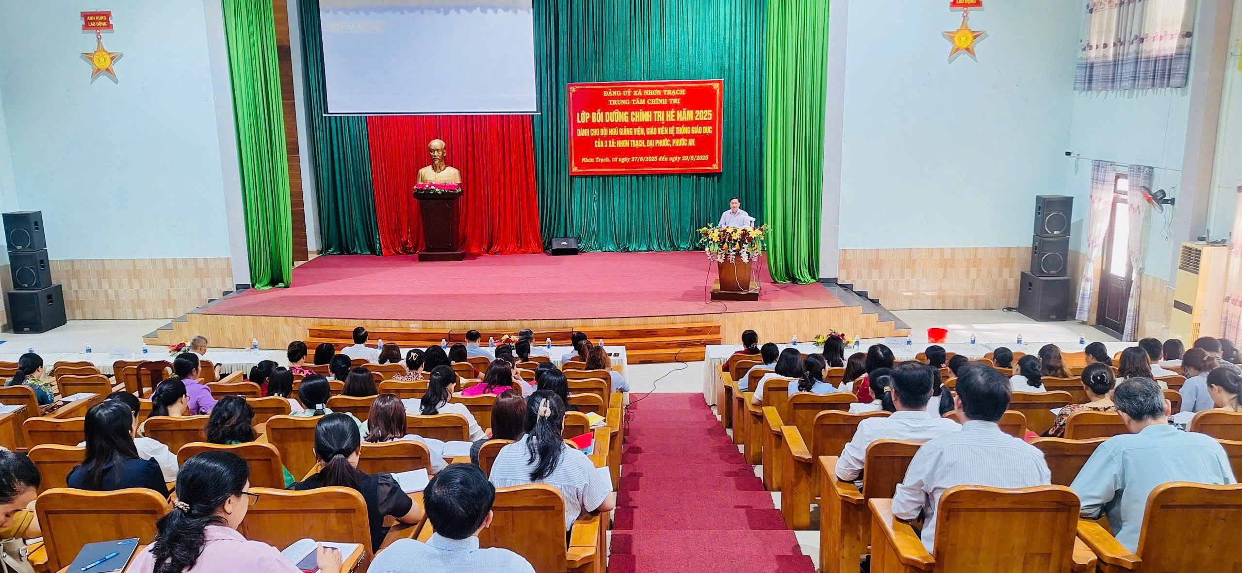 Ngày 27/8/2025, Trung tâm Chính trị xã Nhơn Trạch phối hợp tổ chức khai giảng lớp tập huấn, bồi dưỡng lý luận chính trị hè năm 2025 cho cán bộ quản lý, giáo viên các trường học trên địa bàn 3 xã Nhơn Trạch, Đại Phước, Phước An. Đến dự có Đồng chí Dương Văn Em – Phó Bí thư thường trực Đảng uỷ xã Nhơn Trạch, Đồng chí Phạm Sỹ Linh - Phó Bí thư thường trực Đảng uỷ xã Phước An cùng đại diện lãnh đạo 3 xã.